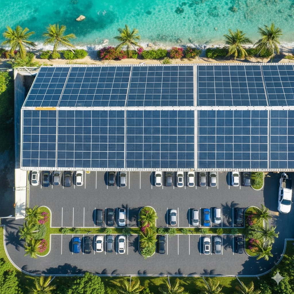 Sistema ideal para hotel, fábrica, hospital o industria, equipado con componentes fotovoltaicos y baterías.